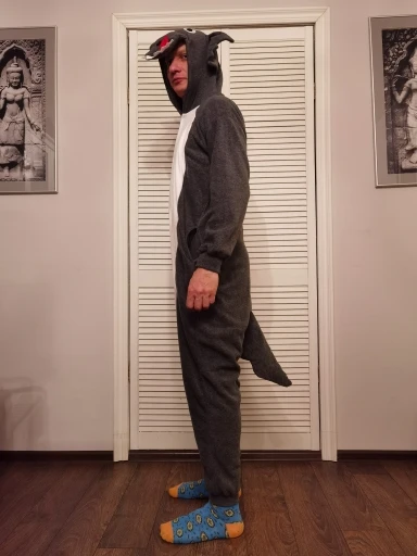 Очень мягкая и теплая кигуруми. На рост 160 взяла XL и чуть длинновато оказалось, но в принципе удобно.