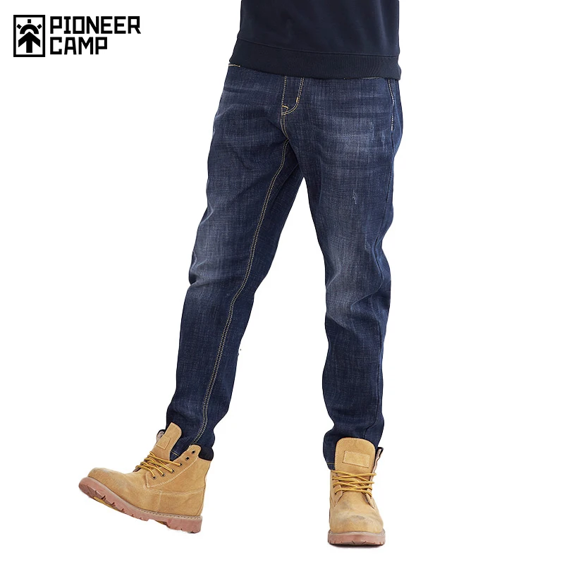 Джинсы Pioneer Camp мужские из плотного флиса, теплые брюки из денима, брендовая одежда, черные Качественные однотонные штаны, Осень-зима
