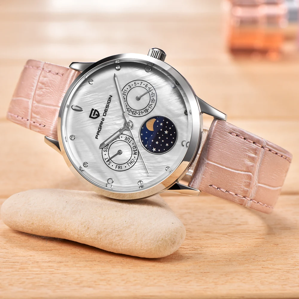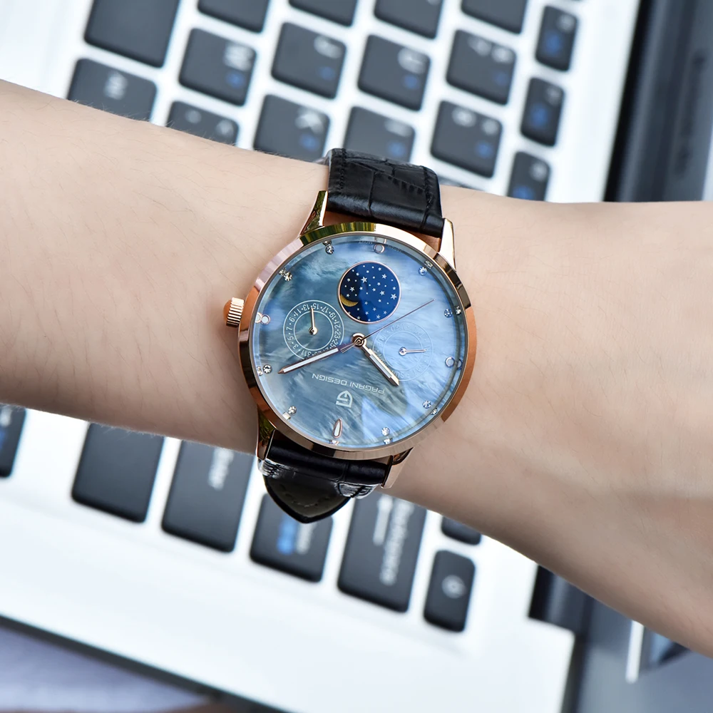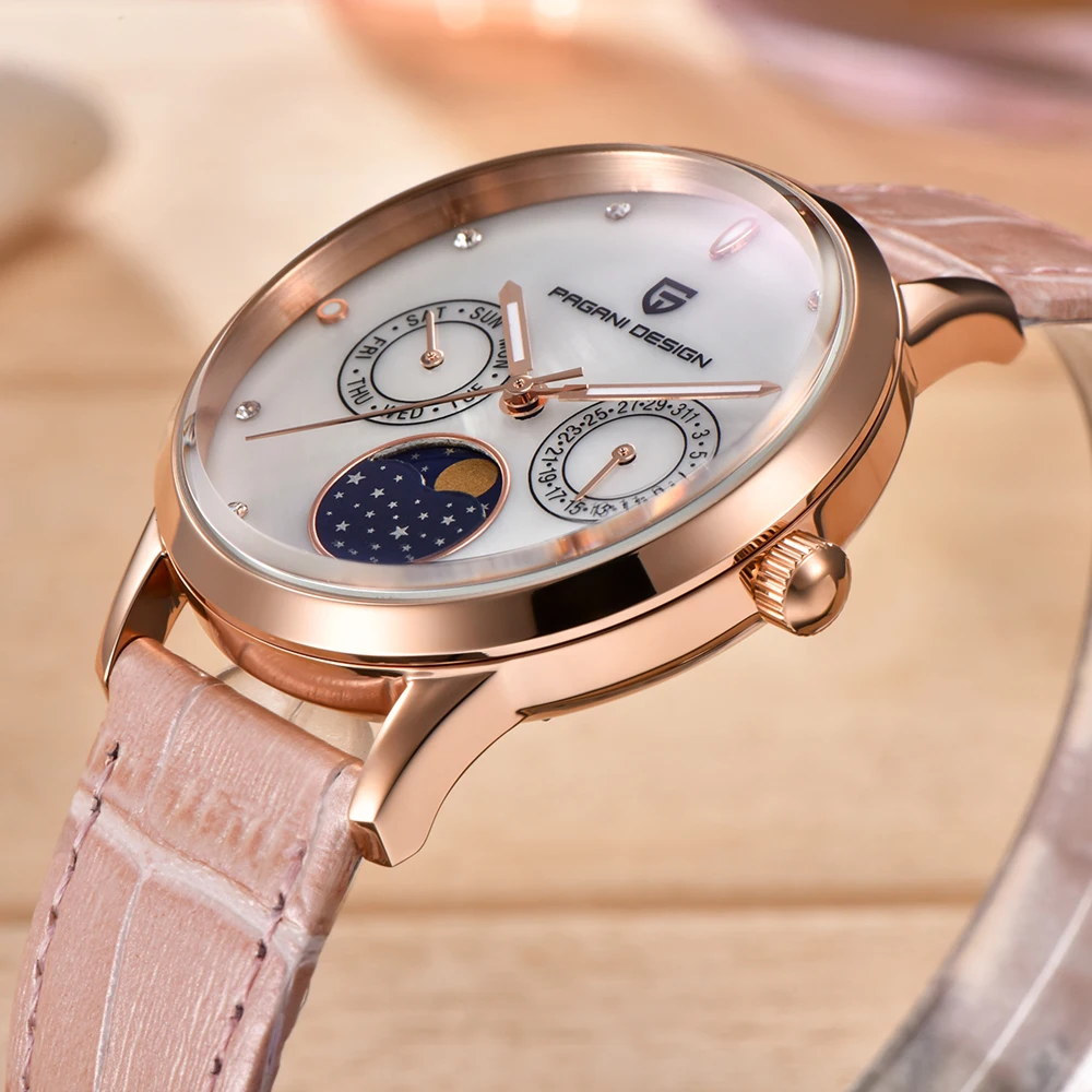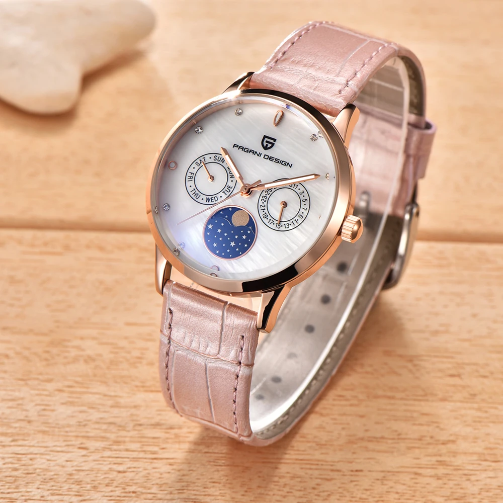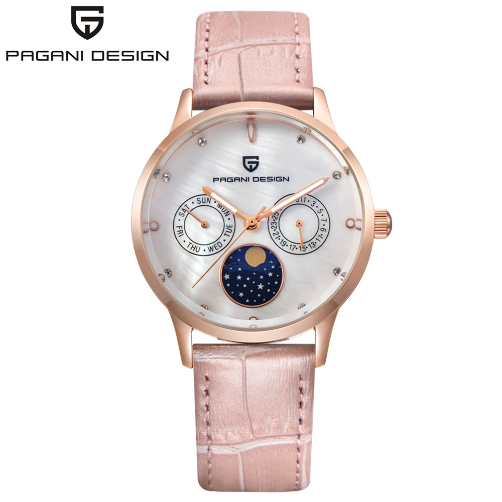Женские Модные кварцевые часы Pagani, повседневные часы из кожи розового золота с кристаллами, женские часы montre femme