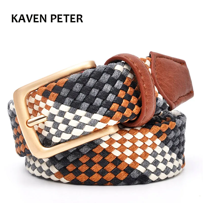 Женский плетеный ремень с золотой пряжкой ширина 3,0 см без отверстий