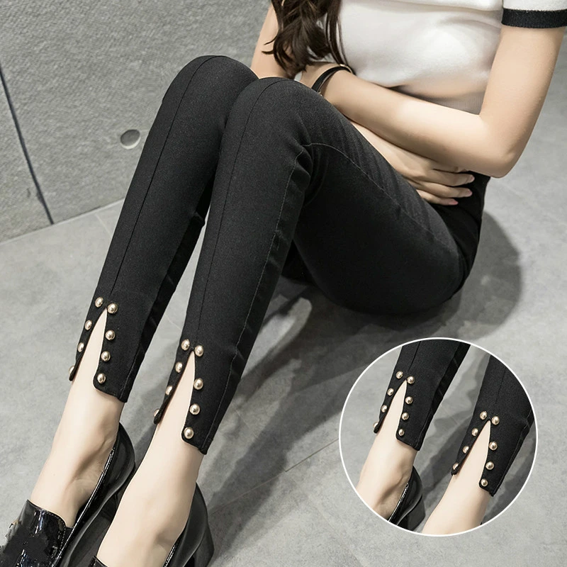 Брюки-карандаш женские эластичные с завышенной талией, повседневные кружевные облегающие брюки-размера плюс, черные, 9XL 10XL, весна-осень 2021