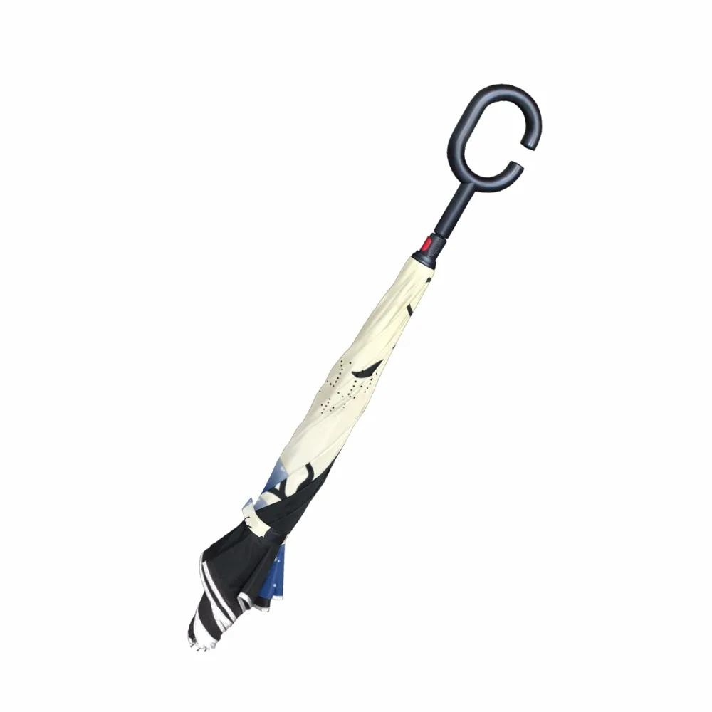 Технология обратного сложения-уникальная складная рама, которая позволяет легко войти и выйти из автомобилей, дверей и других узких мест, не промокая. Зонтик сгибается внутрь, чтобы ловить любые капли воды внутри навеса, чтобы предотвратить утечку.