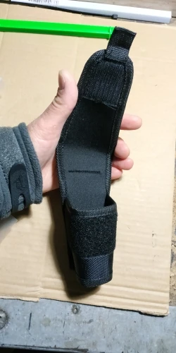 В Кобуре, в котором я получил отверстие, где фонарик идет, немного мал, и он не получил меня правильно, моя головка фонарика 5,5 см