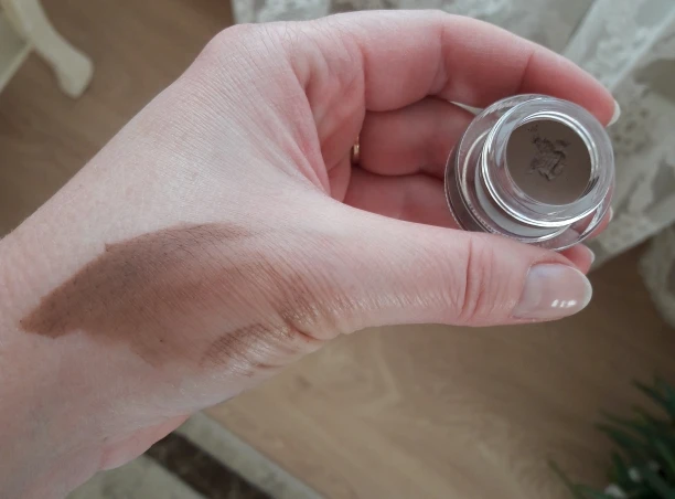 Подводка понравилась. Цвет в баночке очень светлый, при нанесении идеален для моих тёмных бровей