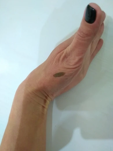 Пришло все быстро, привезли прямо домой. Помадка хорошая, но я первый раз пользуюсь таким продуктом, придётся приноровиться. Цвет на коже гораздо темнее чем в баночке, тушуется хорошо, цвет естественный.