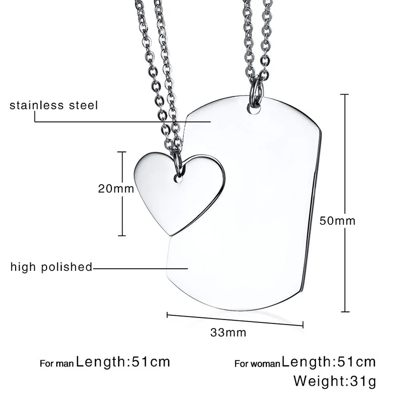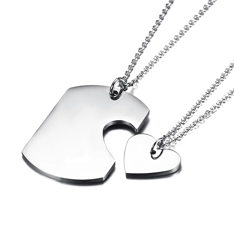 Vnox Бесплатная гравировка пара ожерелье ID Dog Tag кулон в форме сердца полированная нержавеющая сталь Модные женские мужские украшения 20-дюймовая цепочка