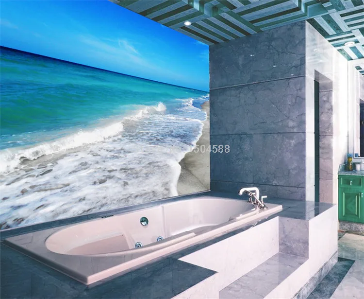 Фотообои Современный Простой Пляж; Морские волны пейзаж настенная наклейка ванная комната водонепроницаемый фон настенная бумага для стены 3 D
