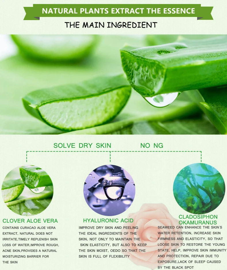 Увлажняющий Гель из морских водорослей алоэ вера содержит натуральный экстракт алоэ с и экстракт австрийских морских водорослей, успокаивающий кожу, сохраняя здоровую кожу восстанавливая кожу, предотвращая шероховатость кожи, питая кожу, мягкая, гладкая, гибкая.