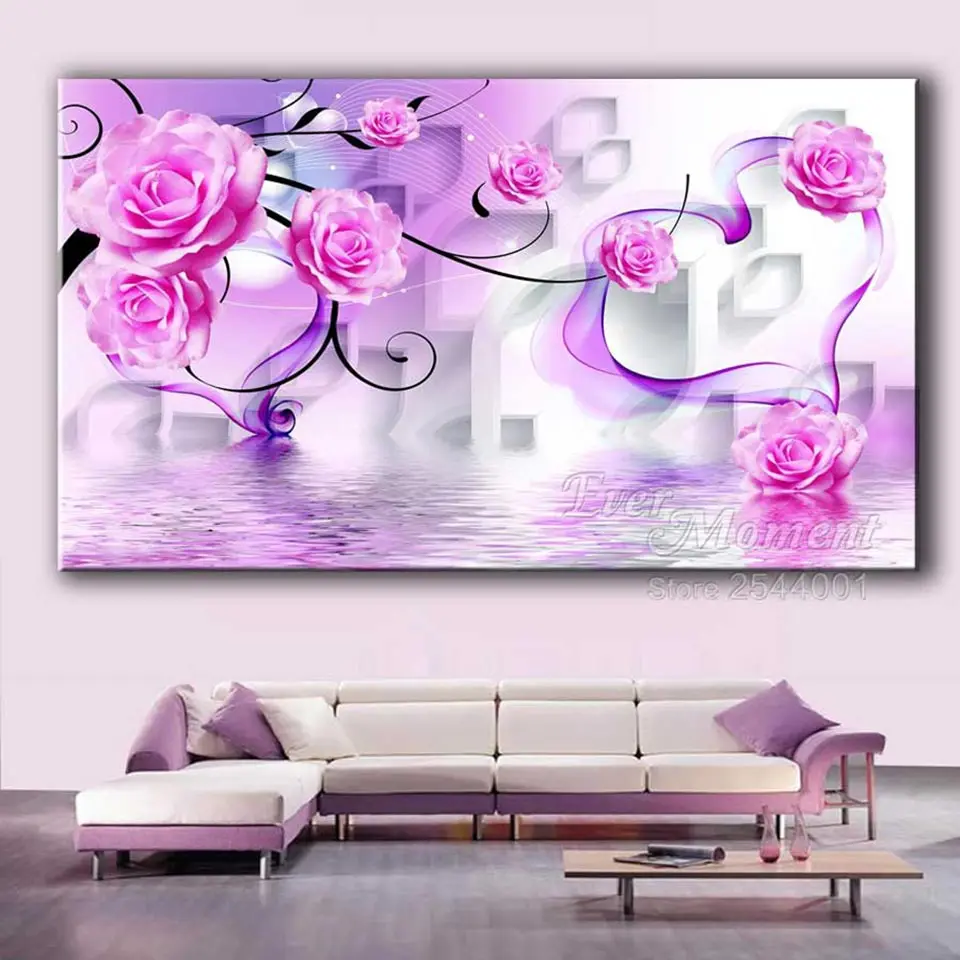 Алмазная живопись с цветами и розовыми камнями, ASF747