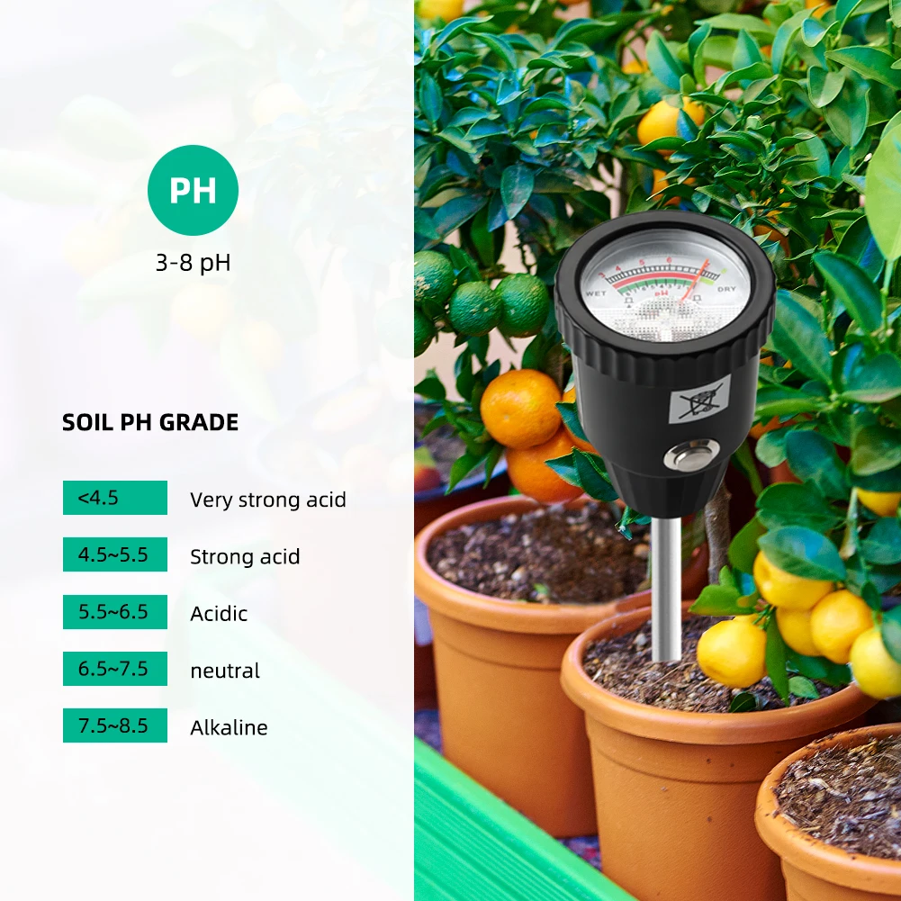 2 в 1 измеритель влажности почвы PH 3-8PH анализатор влажности тестер кислотности металл Длинный детектор датчик для растений садовый измерительный инструментЭтот двойной измеритель предлагает быстрый, простой, легкий и точный метод измерения уровня рН и влажности различных видов почвы. Значение pH почвы играет огромную роль в том, как хорошо растения могут расти и в производстве качественных культур. Тестируя свою почву, вы определяете ее состояние, чтобы можно было настроить ее более эффективно и экономично для достижения оптимальных результатов.Растениям нужен правильный уровень pH, который контролирует, насколько хорошо они используют питательные вещества, доступные в вашей почве. Изменение рН почвы резко влияет на доступность питательных веществ для выращивания культур.Он измеряет значения рН от 3 до 8 с указанием кислотности и щелочности, в то время как уровень влажности измеряет от 1 до 8 с указанием сухой или влажной почвы. Включает удобный Уход за растениями со списком предпочтений для выращивания красивых овощей, цветов и кустарников, деревьев, сорняков и фруктов. Используйте в помещении и для горшечных растений!