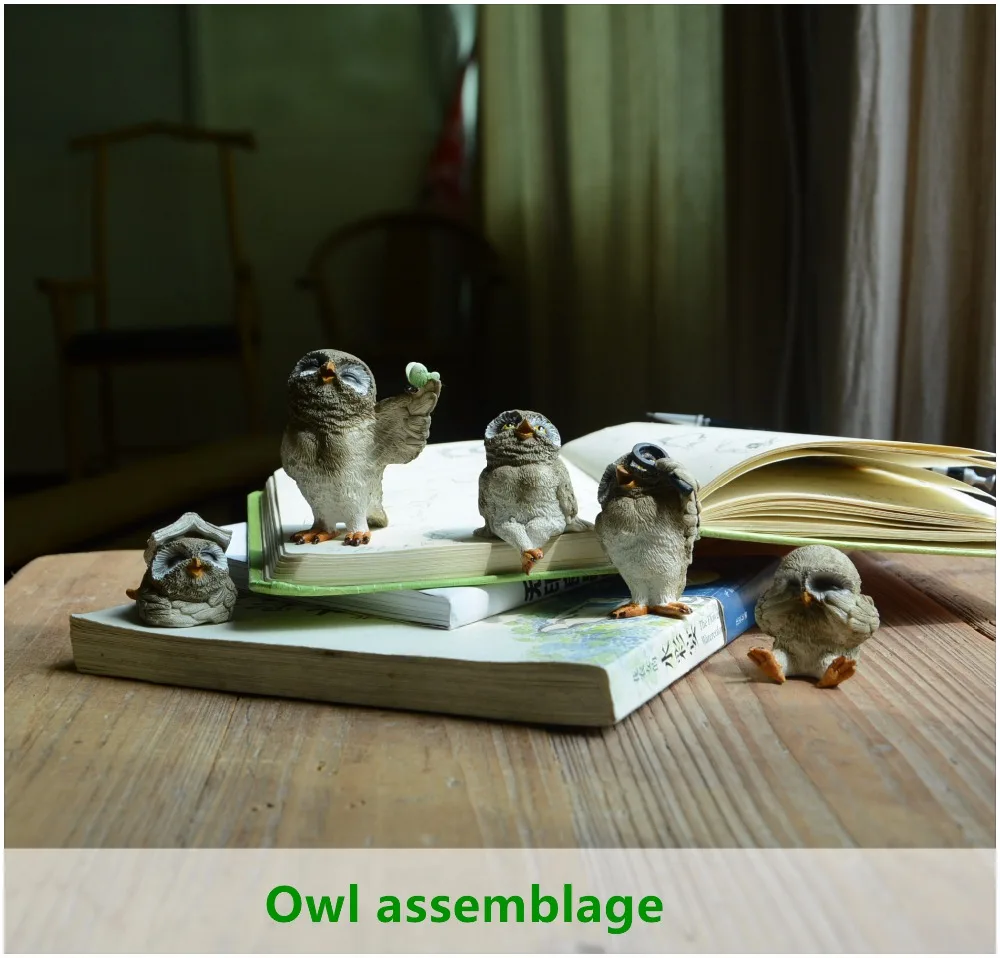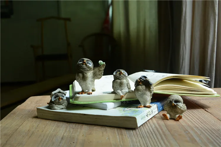 Повседневная коллекция из смолы с изображением животных миниатюрная Статуэтка ручная работа домашний Сказочный эльф сад балкон настольное украшение сова украшение