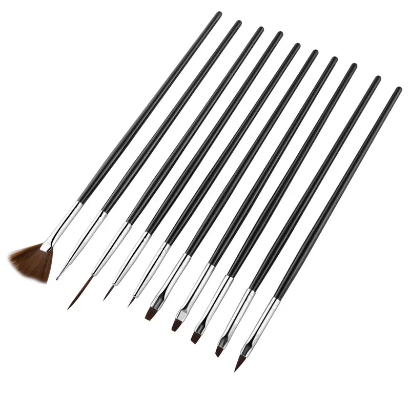 10 шт. кисточки для дизайна ногтей лайнер точечный веер дизайн акриловая плоская кристальная роспись рисунок ручка для резьбы УФ-гель набор инструментов для маникюра