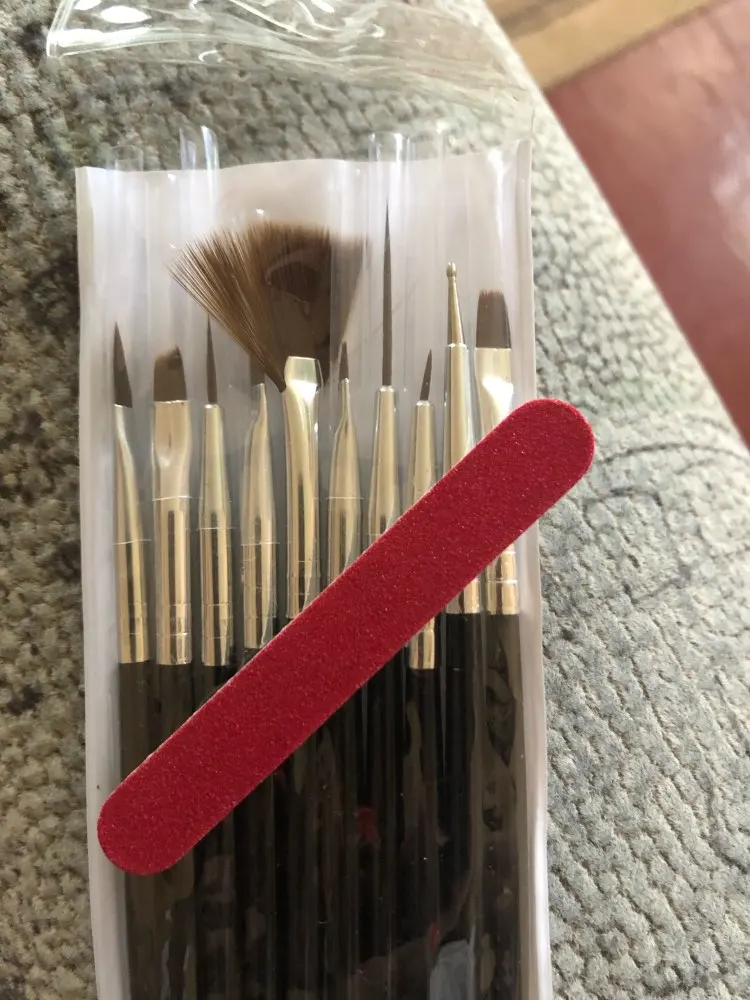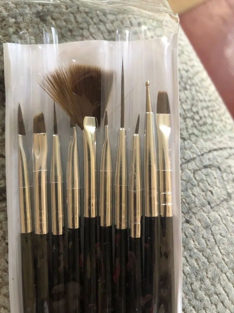Кисточки супер, 10 штук, все разные, ворс натуральный, спасибо продавцу, рекомендую, в подарок положили пилочку!