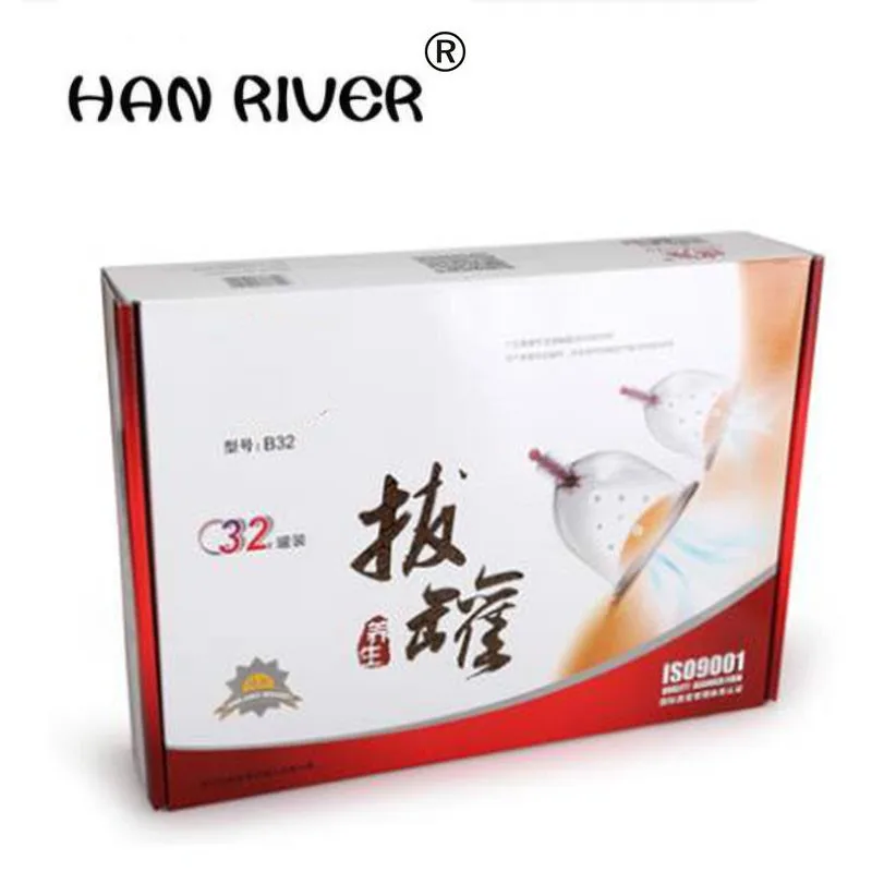 HANRIVER дешевые банки, 32 штуки, чашки, китайский комплект, вытягивающий вакуумный аппарат, терапевтические расслабляющие массажеры, изогнутые всасывающие насосы
