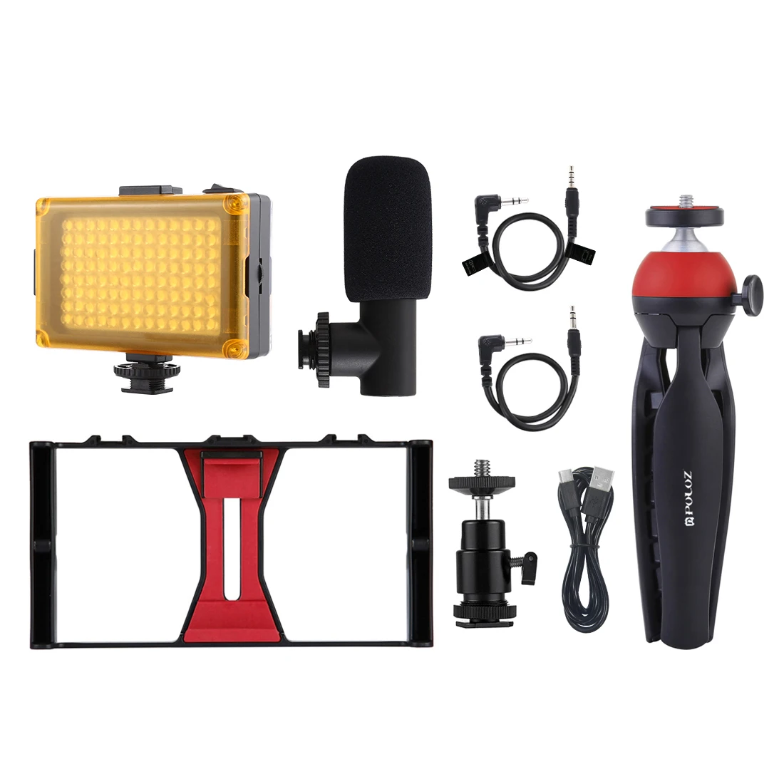 1 х микрофон1 х студийный светильник1 видеоустановка1 держатель штатива1 х штатив для холодного башмака