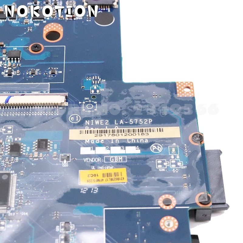NOKOTION Новый NIWE2 LA-5752P основная плата для Lenovo IdeaPad G560 Материнская плата ноутбука HM55 DDR3 GT310M GPU Бесплатная ЦП