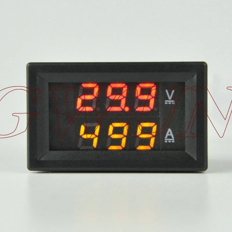 Цифровой амперметр GWUNW BY32A 0-500 в 0-а постоянного тока, вольтметр, двойной дисплей, красный, синий, зеленый, желтый светодиодный