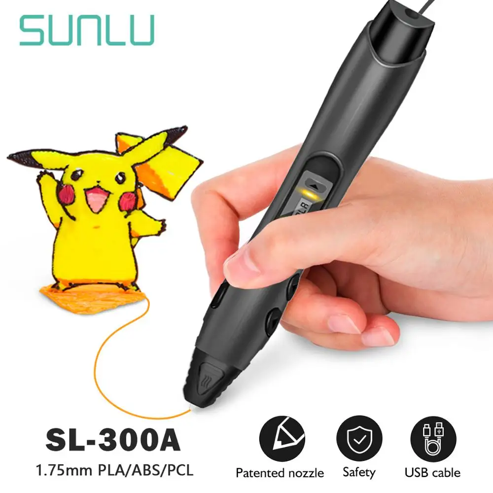 Ручка для рисования SUNLU SL-300A 3D, ручки с поддержкой PCL ABS PLA нити, заправки, рождественский подарок