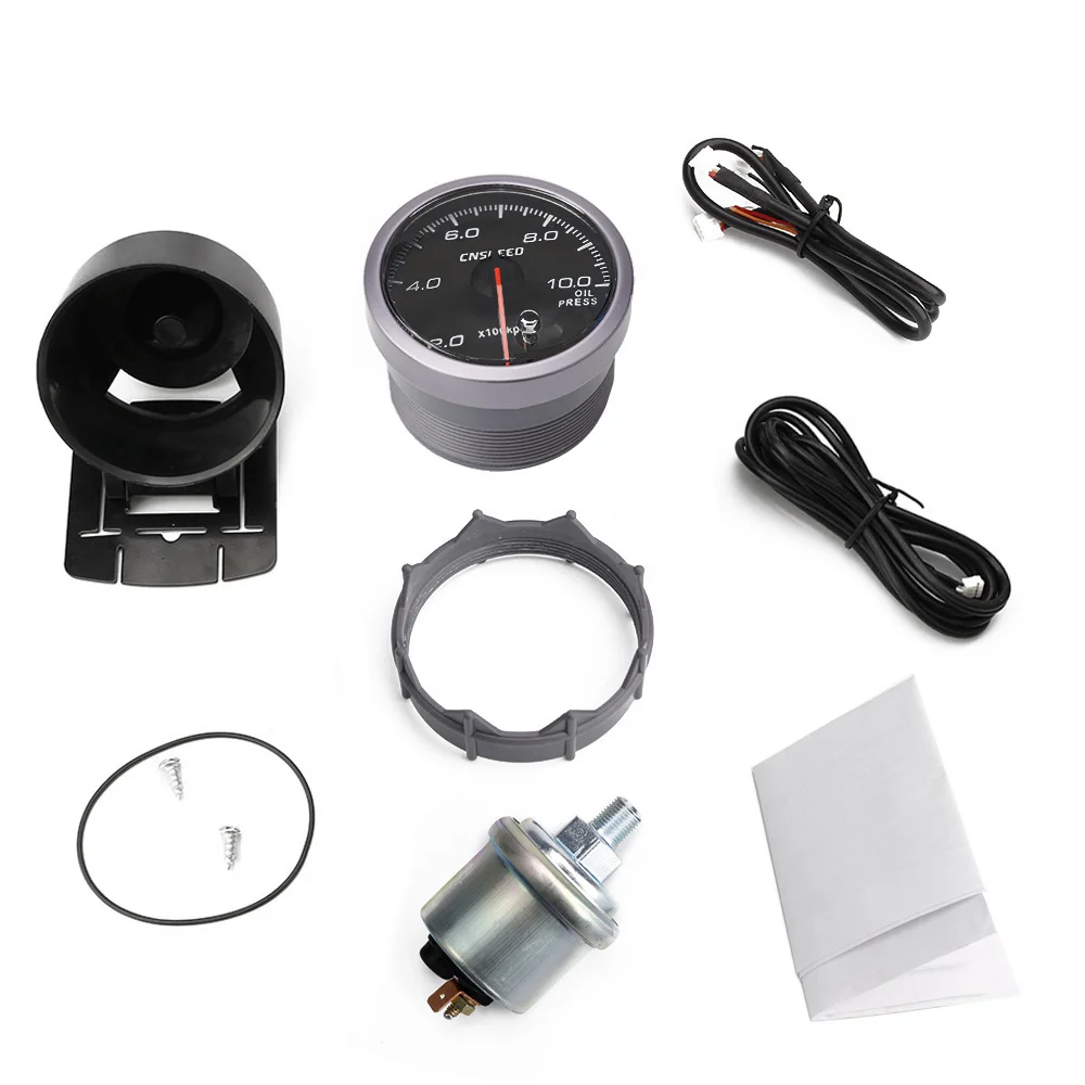 Измеритель давления масла CNSPEED YC101415 + YC100211, 60 мм, автомобильный манометр давления масла, диапазон от 0 до 10 бар, с датчиком, красным и белым светом