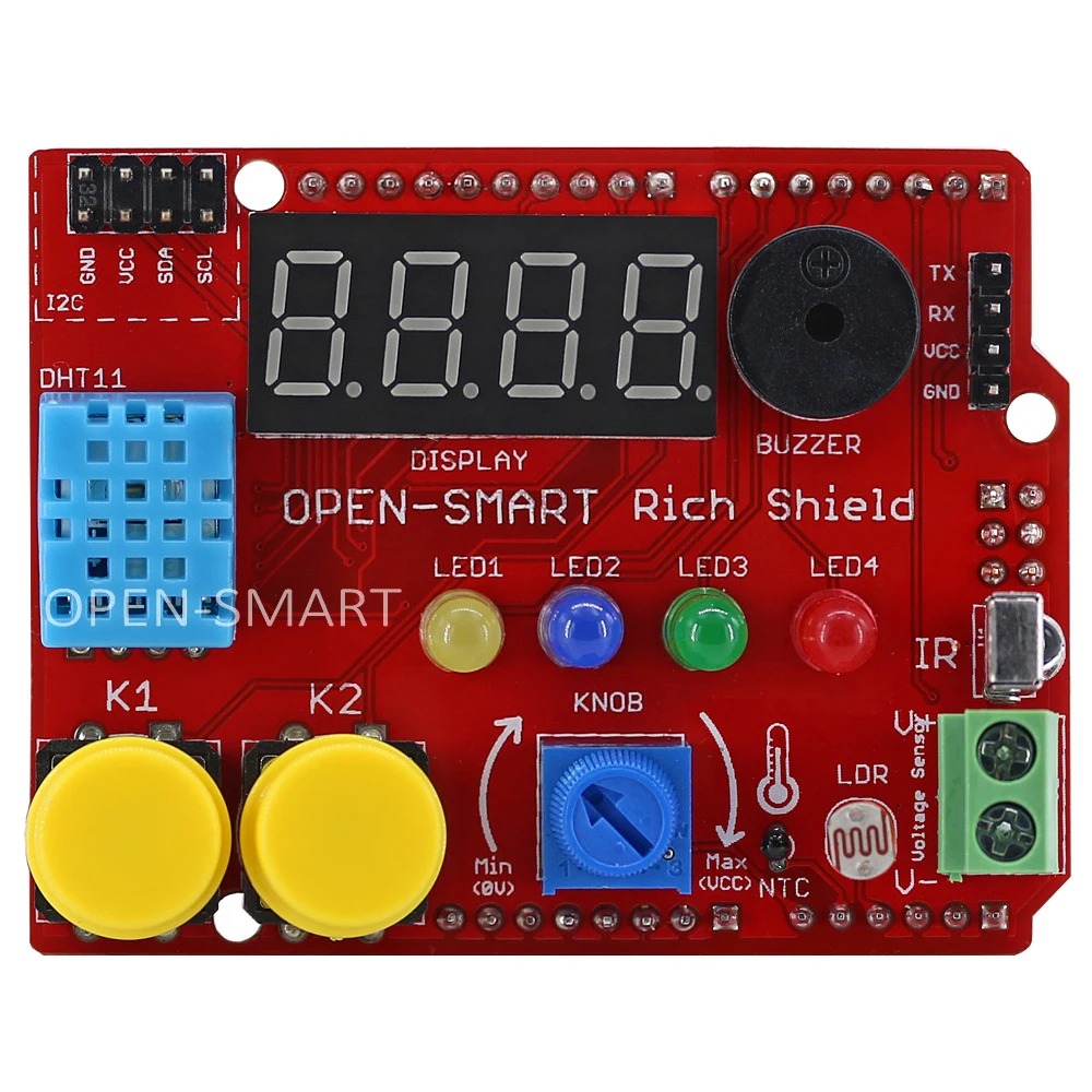 Стартовый комплект, богатый щит с инфракрасным приемником, светодиодная Кнопка зуммера DHT11 светильник датчика температуры и напряжения, плата для Arduino
