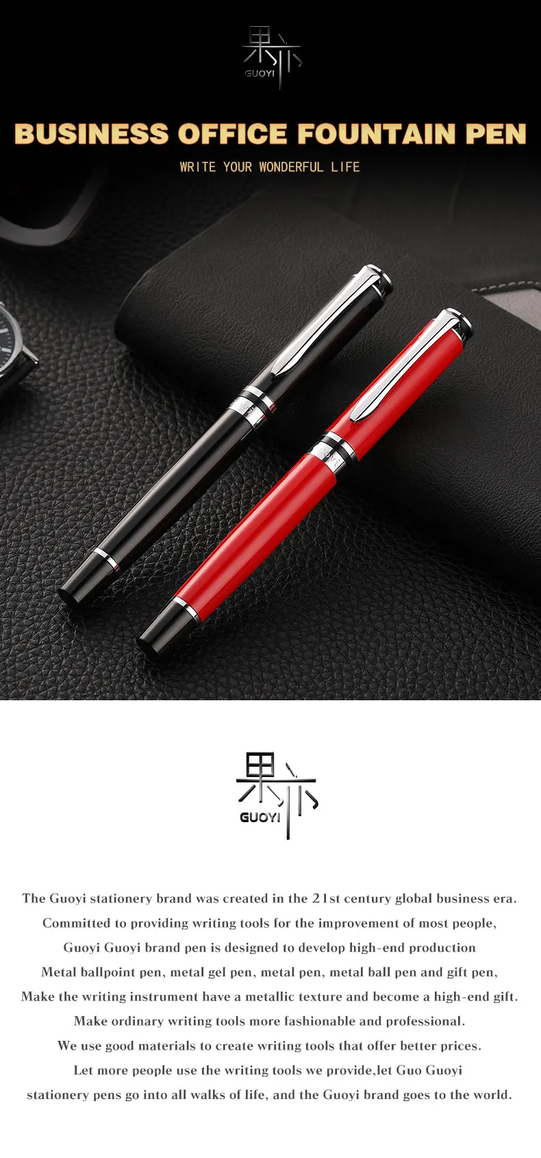 Ручка перьевая Guoyi A293 металлическая, с чернилами, 0,5 мм
