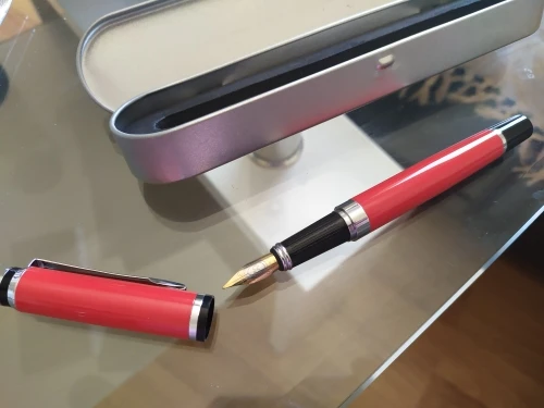 Красивая и качественная ручка. Прям золотое перо :) Хорошо для подарка. Пишет толстенько. С поршнем для забора чернил. Тяжёлая. Шла долго, вернее валялась на почте Израиля целый месяц. Упакована была хорошо. Спасибо!