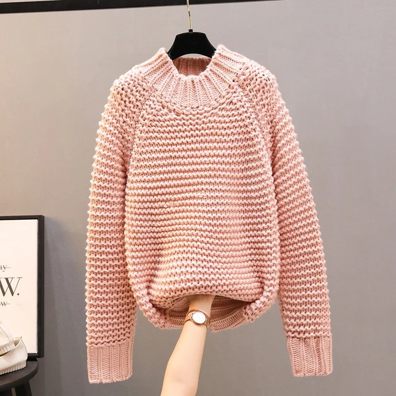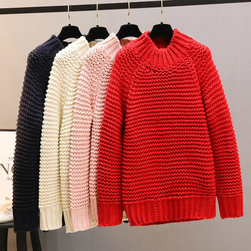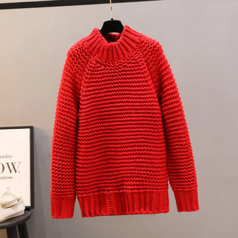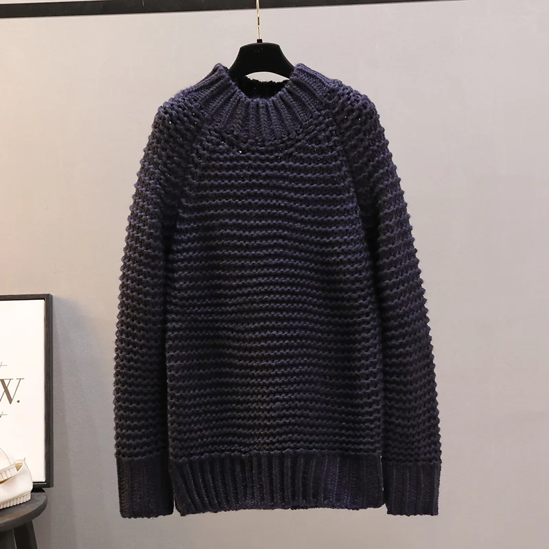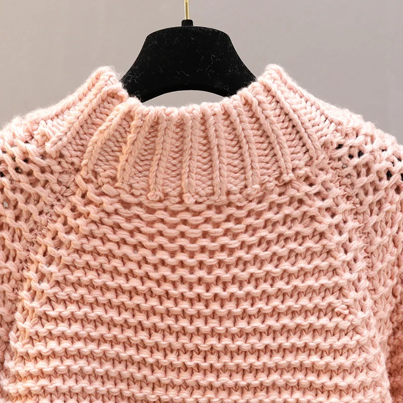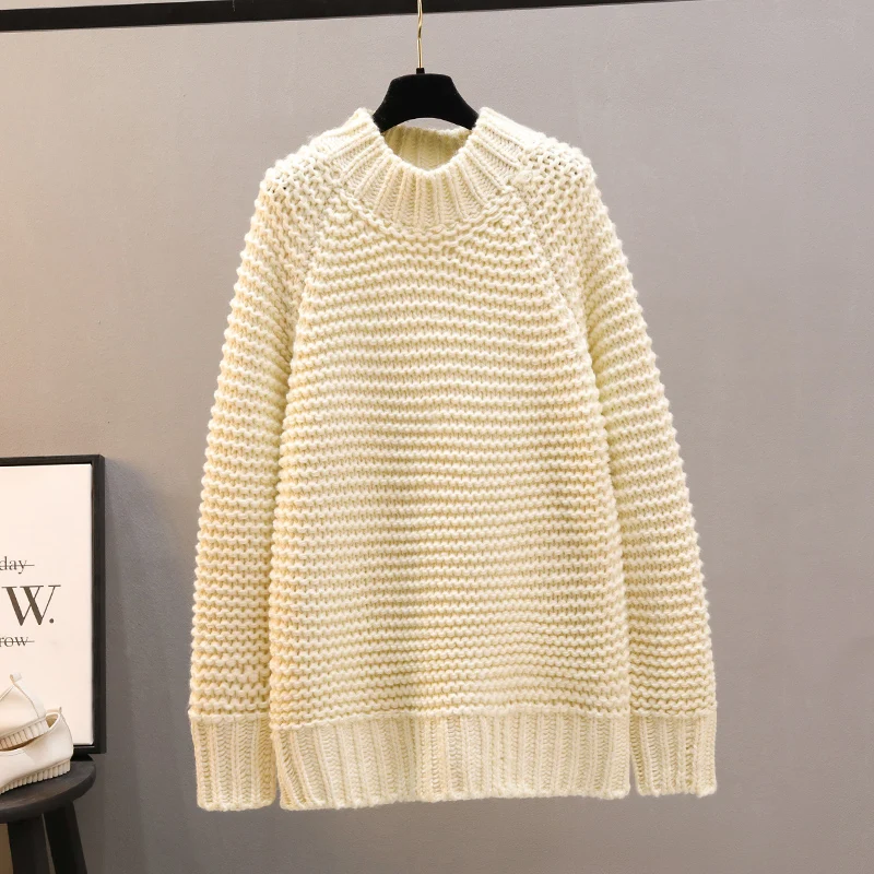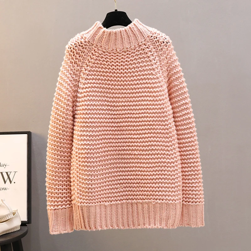 Свитер женский зимний, плотный, с грубыми линиями, белого цвета, большие размеры, свободный свитер с высоким воротом