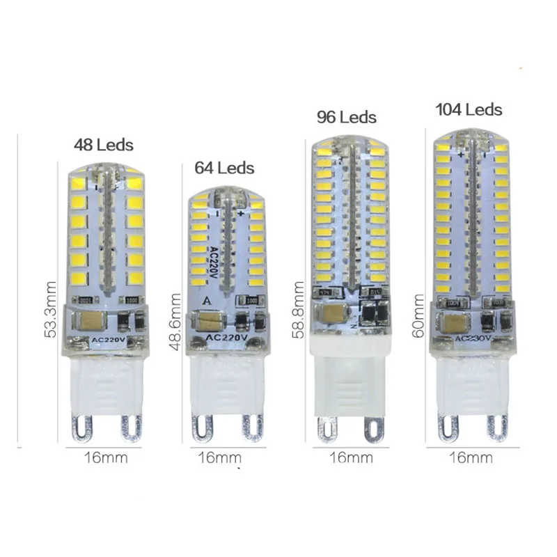 Сверхъяркая миниатюрная Светодиодная лампа, 10 шт., 7 Вт, 9 Вт, 12 Вт, 15 Вт, 21 Вт, 110 В, 220 В, светодиодная лампа G9 SMD 3014, точечная свеча, сменные галогеновые лампы 20 Вт-60 Вт