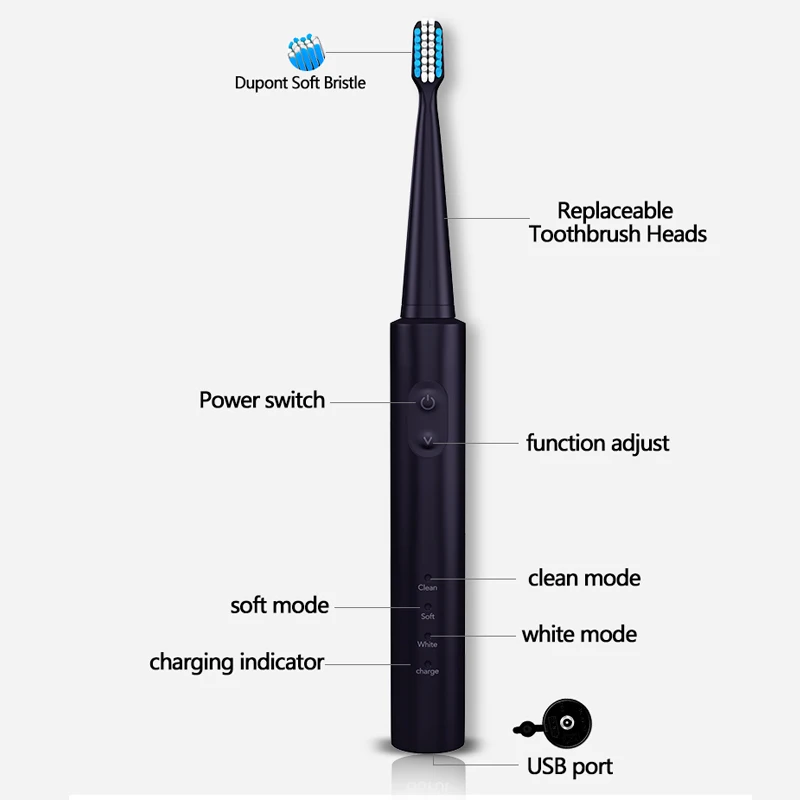 Звуковая электрическая зубная щетка с USB аккумулятором, электрическая щетка для чистки зубов, 4 головки зубной щетки для взрослых и детей, водонепроницаемая зубная щетка
