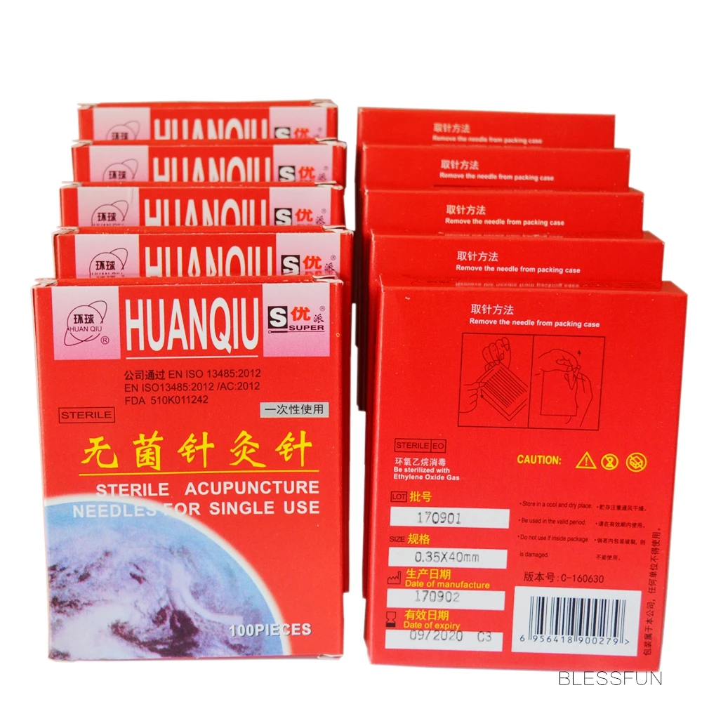10 коробок HUANQIU одноразовые иглы для иглоукалывания TCM, филиформированные иглы для хирургии, стальные плоские Пружинные ручки всего 1000 шт.