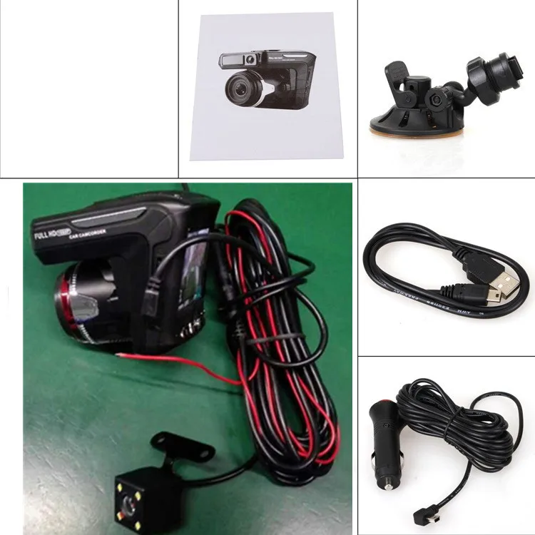 Автомобильный видеорегистратор с двумя объективами, 140 градусов, 1080 P, 2,4 дюйма, видеорегистратор с ночным видением, радарный датчик, g-сенсор, автомобильный видеорегистратор