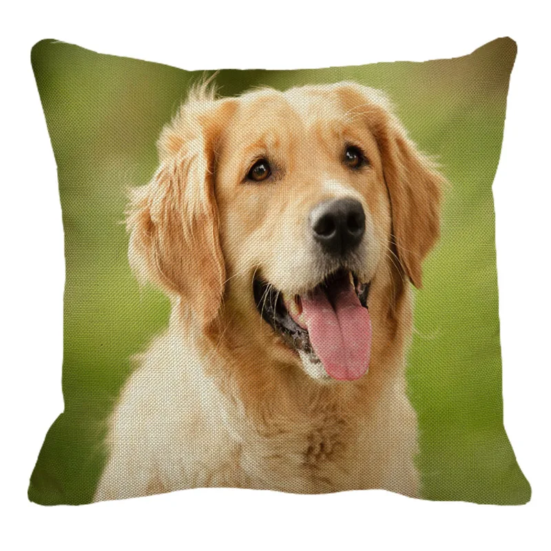 Льняная Подушка XUNYU с золотистым ретривером, квадратный декоративный чехол для дивана, наволочка с рисунком собаки, 45x45 см AC005