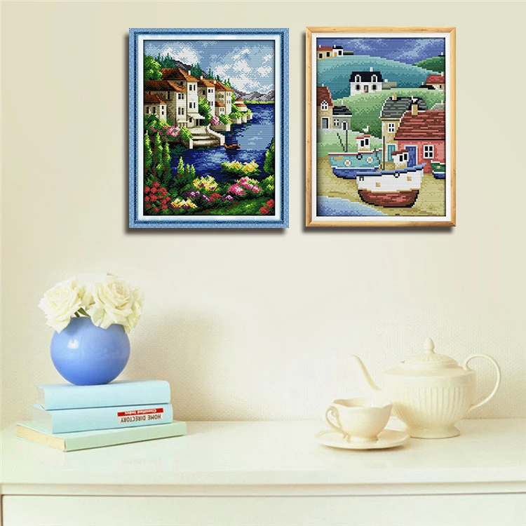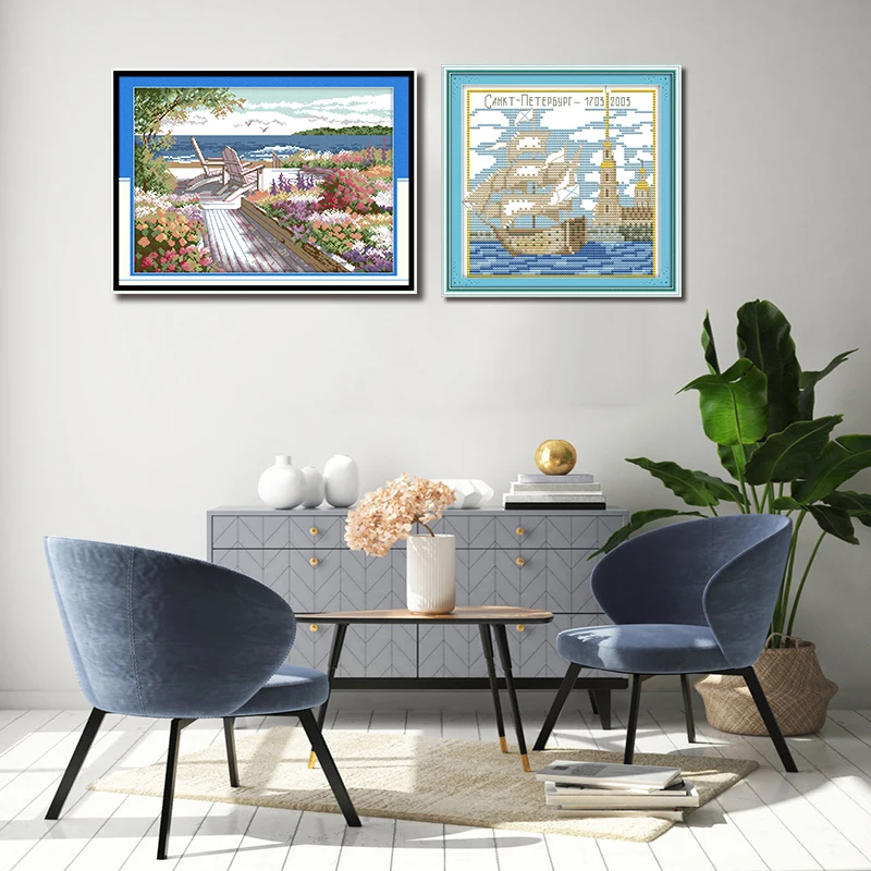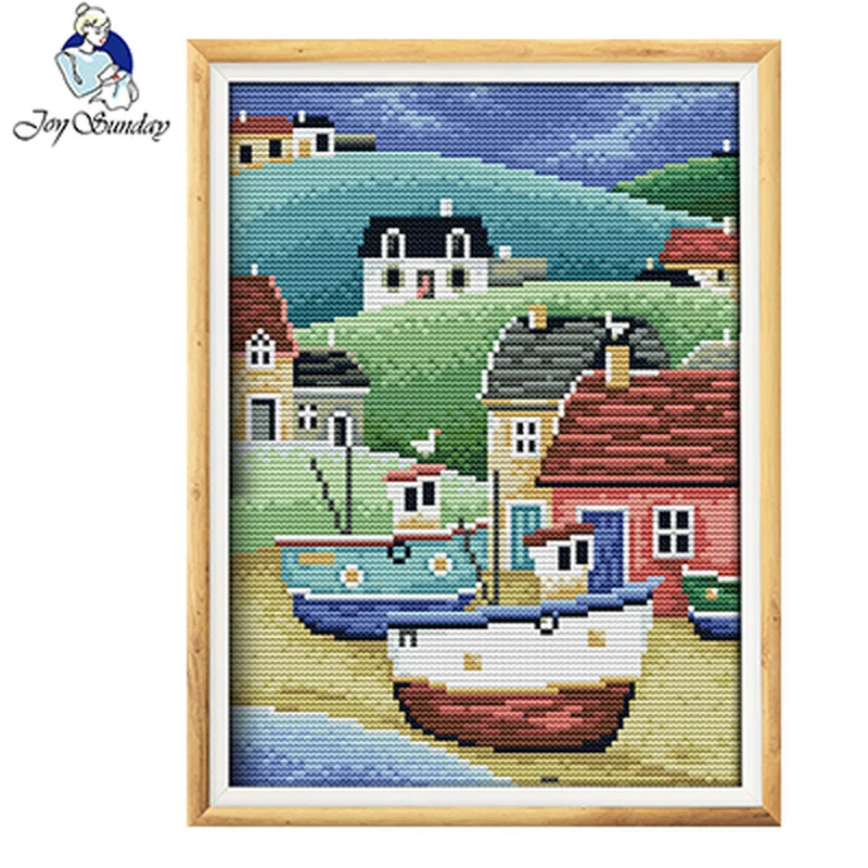 Набор для вышивки крестиком Joy Sunday, серия Морского Пейзажа, подсчитанные узоры DIY14CT, Набор для вышивки крестиком из искусственной ткани DMC