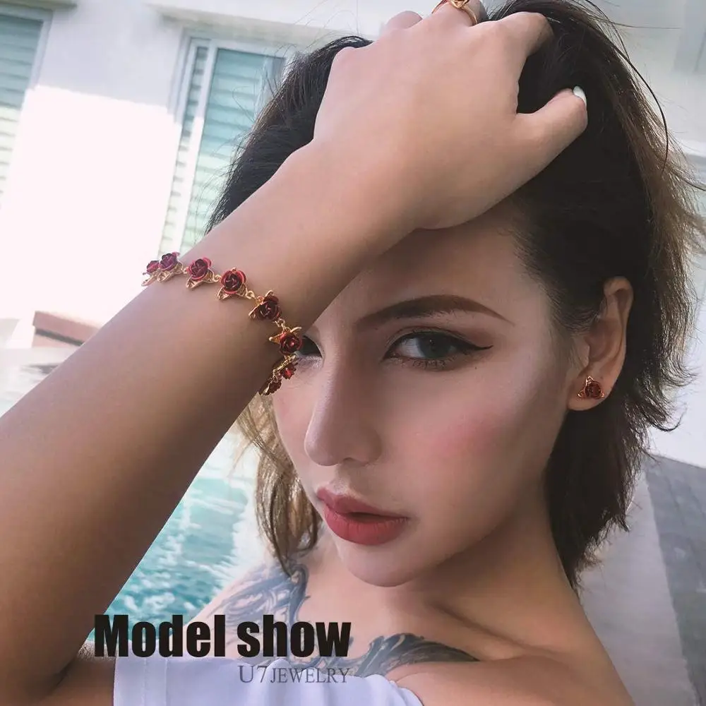 Браслет женский с подвеской в виде красной розы, на запястье, H1047