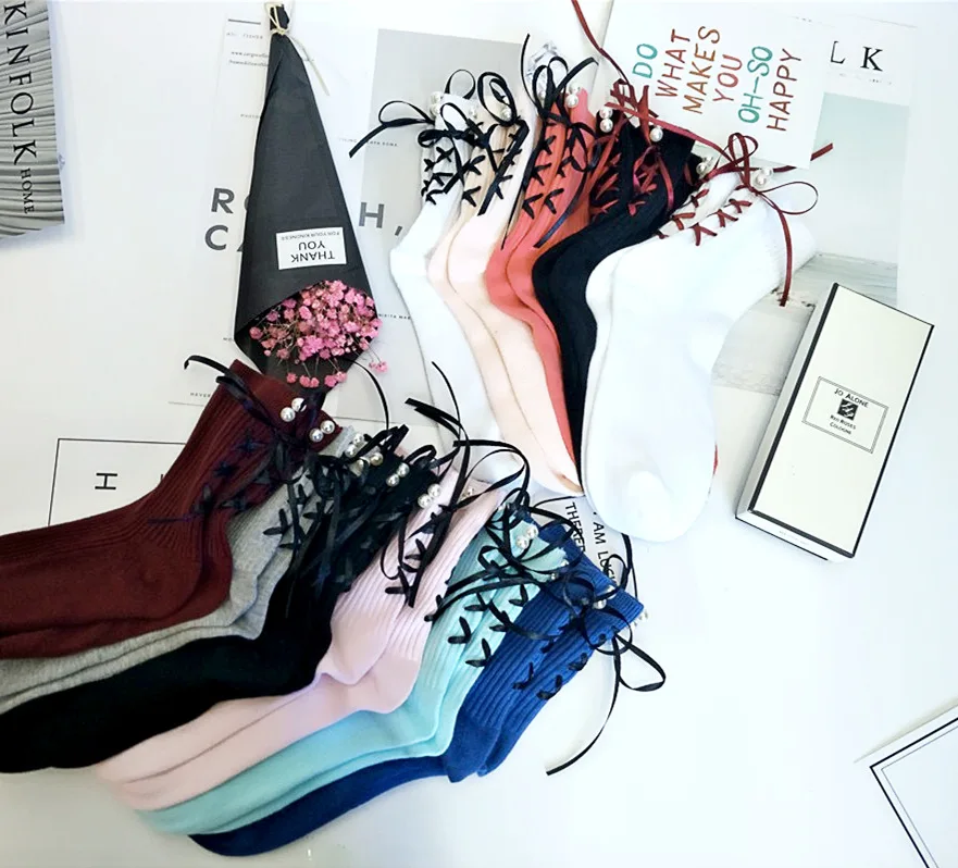 Новейшие носки BKLD в стиле Харадзюку с бантом и перекрестными бусинами, повседневные женские зимние рождественские носки для девочек, забавные мягкие хлопковые носки