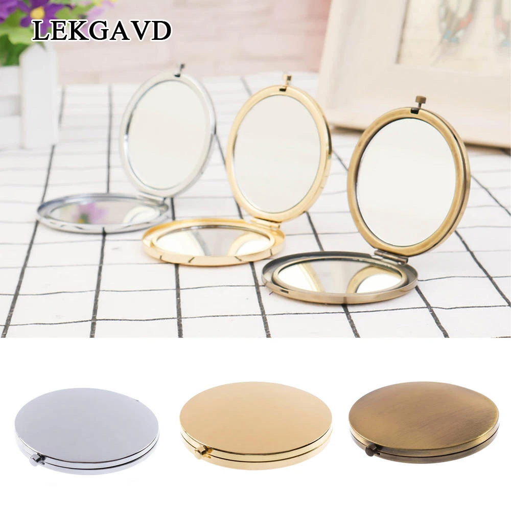 Компактное зеркало без рисунка, 1 шт., портативное металлическое косметическое зеркало сделай сам, карманное зеркало для макияжа, серебристое, золотистое, бронзовое