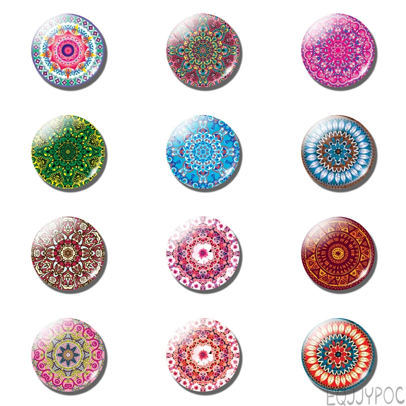 Магнит на холодильник, мандала, буддизм, Йога, индийский стеклянный держатель для заметок, 12 шт., 25 мм