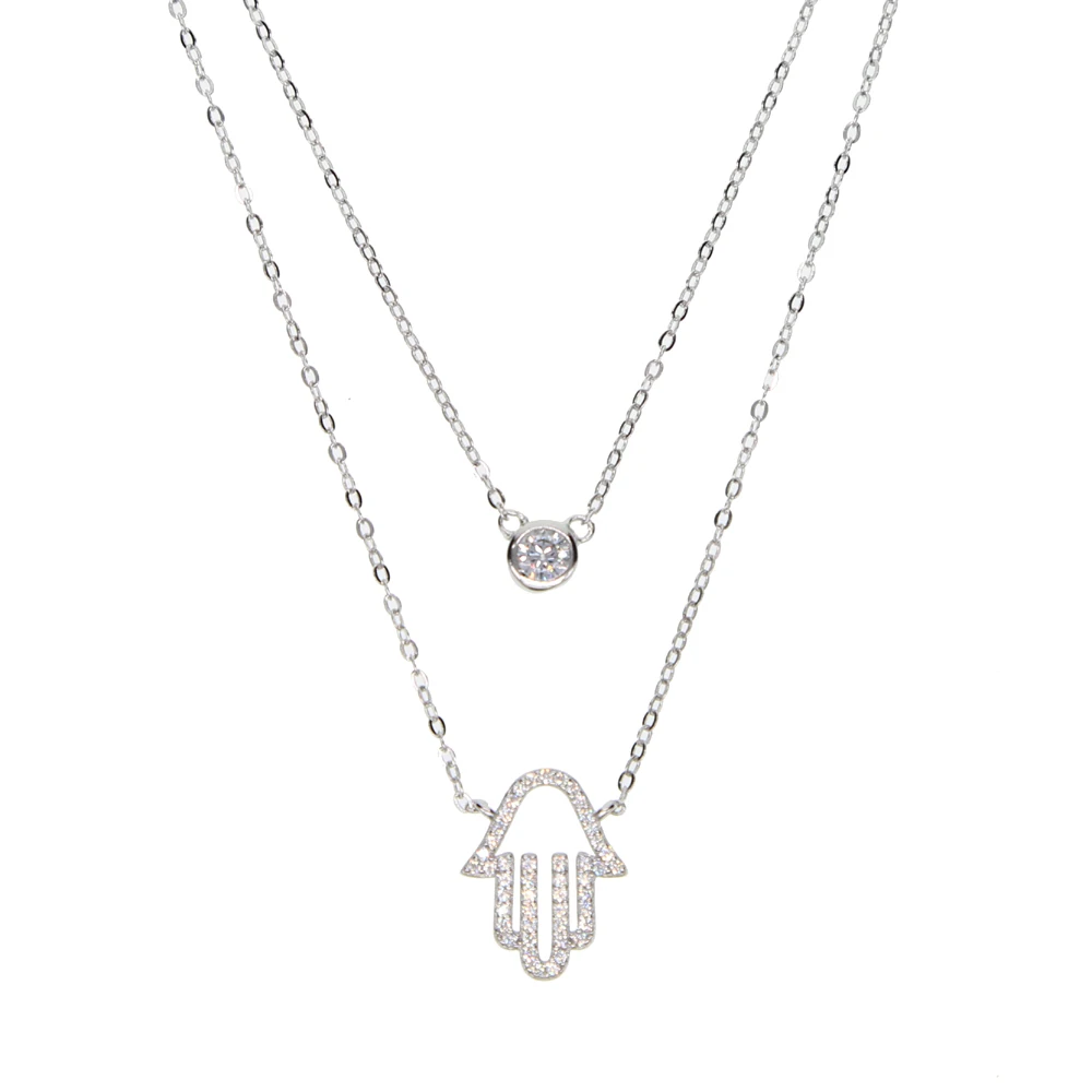 925 серебро двойной цепи одного ободок cz Амулет Хамса для рук кулон для женщин Роскошные чистого серебра двойной слой ожерелье ювелирные изделия