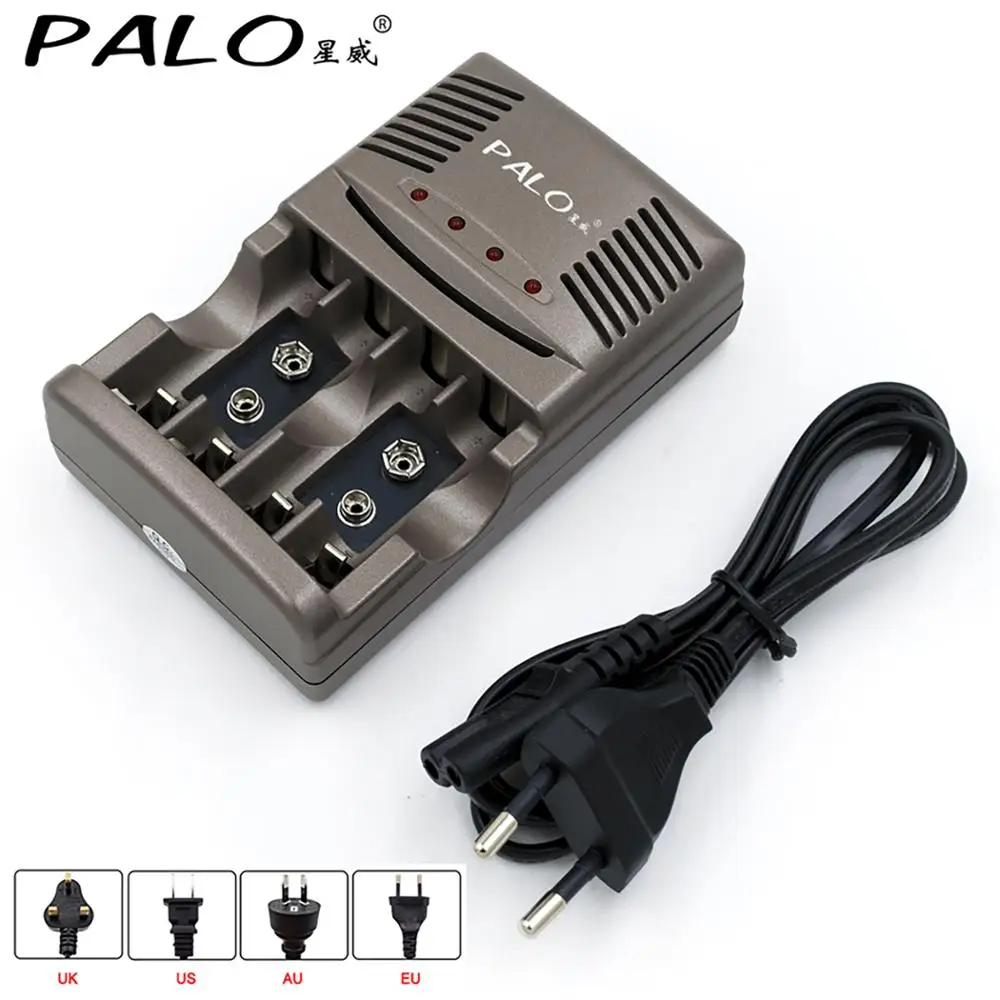 100% оригинальное зарядное устройство PALO для аккумуляторов aa aaa 2a 3a 9V, электрическое зарядное устройство для аккумуляторов 1,2 V aa AAA 9v(6F22)Ni-MH