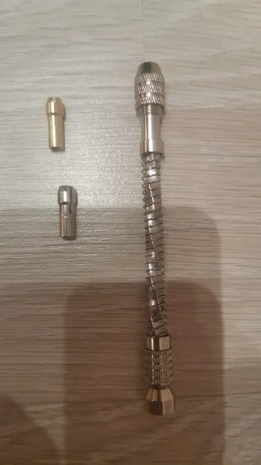 Очень быстрая доставка. Товар соответствует описанию, качество изготовления отличное. Некоторые описывают как фиксированные под сверло 0.3 и 2 мм., это заблуждение. Цанги 2 шт., одна с меньшим отверстием, а вторая с большим. Но обе имеют разрезы, то-есть раздвигая их можно вставлять сверла разного диаметра и зажимать. Вещь довольно интересная и оригинальная для выполнения некоторых работ. А кого не устраивает - есть электро дрель. Продавцу спасибо и успехов в торговле. Надежный продавец.