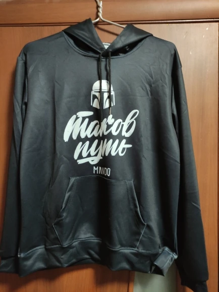 Наконец-то я получила свой заказ! Доставка задержалась на 4 дня от ожидаемого. Посылка 12 дней была у службы доставки в России и никакой информации о ней не было. Продавец контактный, вежливый, отвечает быстро, сделал все, как я просила и мог с вопросом по задержки доставки. Сама кофта супер классная! Печать качественная, размер соответствует (на упаковке размер тоже был указан), на мой 48-50 села свободно, но не висит, рукава нужный длины и плечи на месте, тонкая и лёгкая, очень приятная на теле. Для сравнения прикрепляю фотографии кофты и картинки для печати, которые отправляла продавцу.