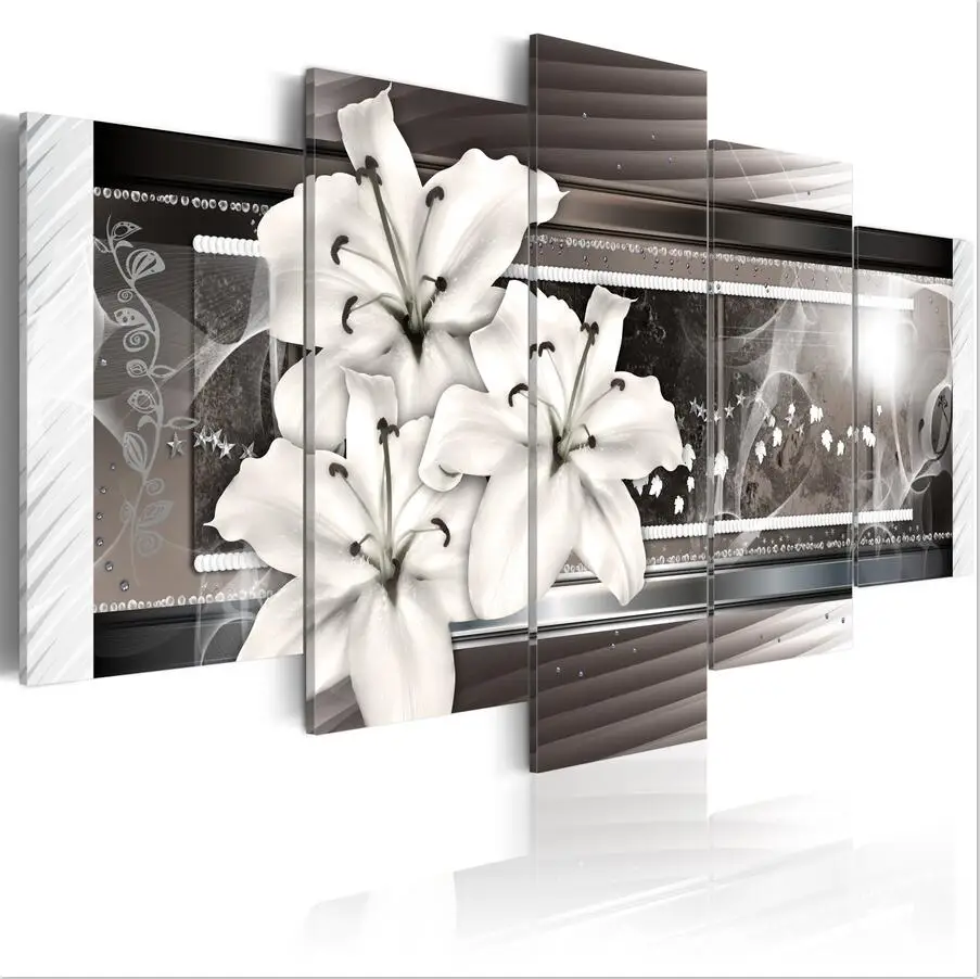 Картины на холсте, декор для гостиной, 5 шт., цветок лилии, Модульн...
