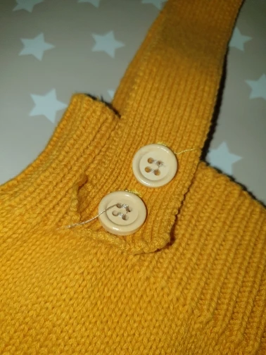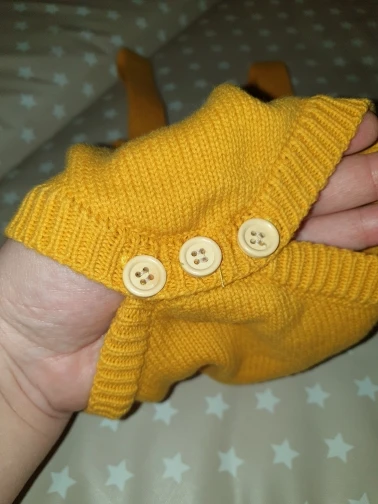 Отличный комбенизон. Качество хорошее. Вязка ровная. Петли под пуговицы сделаны качественно. Рекомендую.