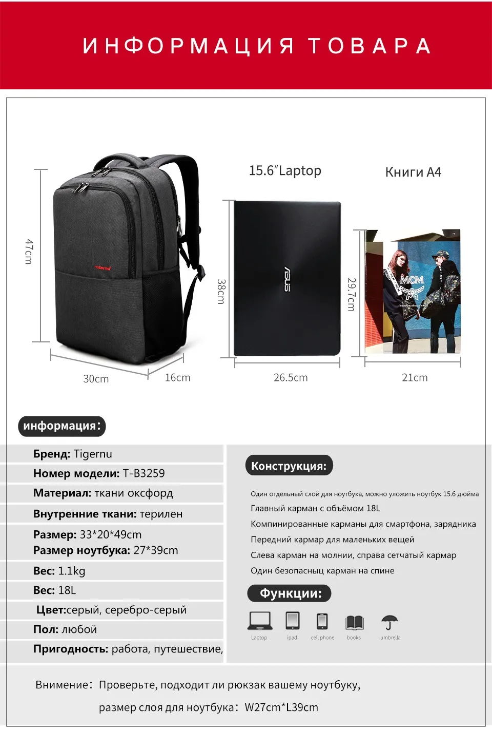 Рюкзак Tigernu Повседневное Водонепроницаемый Анти-кражи 15,6 дюймовый ноутбук рюкзак Для мужчин тонкий школьного рюкзака сумки мужской дорожный рюкзак для девочек-подростков