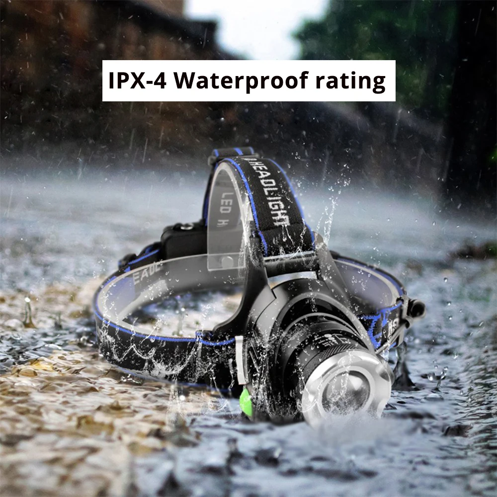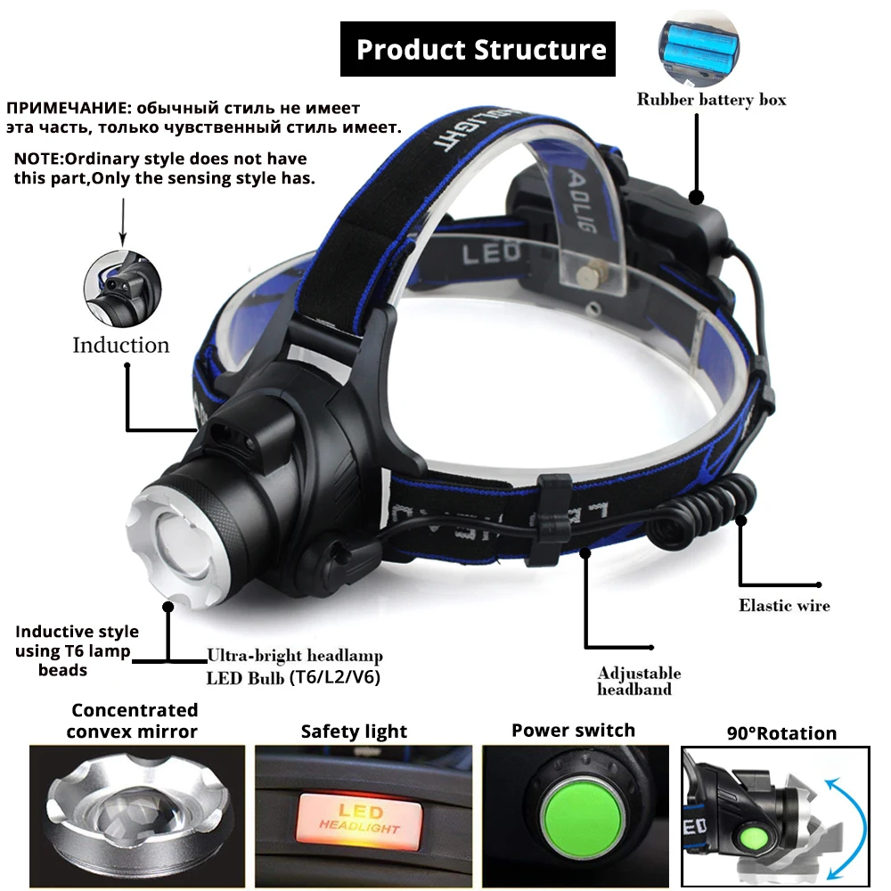 Суперяркий светодиодный налобный фонарь, индукционный переключатель, рыболовный налобный фонарь, поддержка режима освещения zoom 3, работает от 2 батареек 18650
