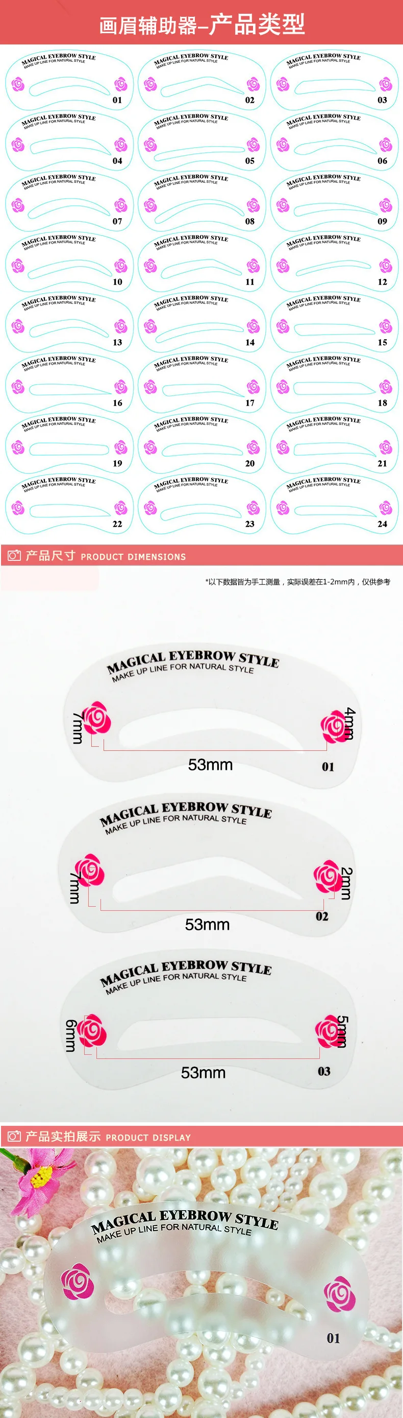 1. Трафареты для бровей с 24 различными формами (элегантный, классический, нежный, гламурный)