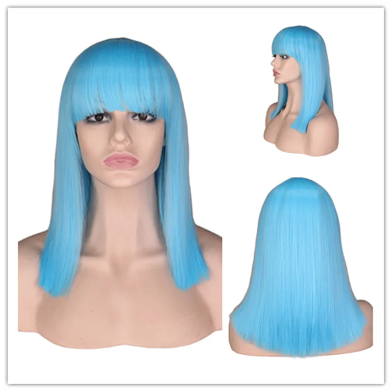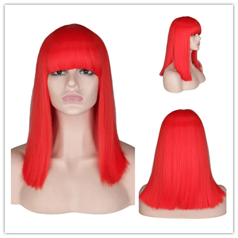 QQXCAIW Короткий прямой парик для костюмированной вечеринки, красный, светлый, синий, зеленый, розовый, высокотемпературные синтетические волосы