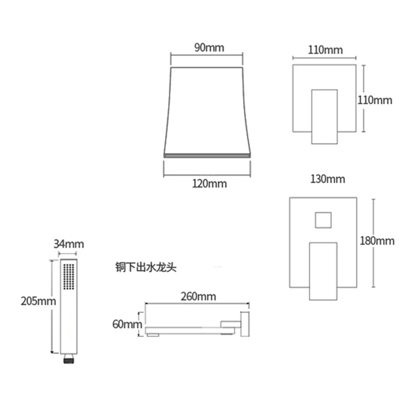 Черный скрытый смеситель для ванной комнаты, кран для душа с водопадом, настенный смеситель для ваннойUSD 136,67-330,00/Шт.