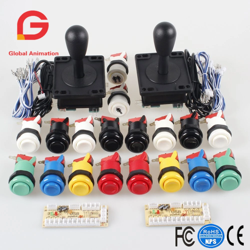 Классическая аркадная игра DIY часть для Mame USB шкафа 2x Нулевая задержка USB энкодер для ПК Игр + 2x8 способ джойстика + 18x аркадная кнопка (включая 1p / 2p кнопки запуска) наборы разных цветов
