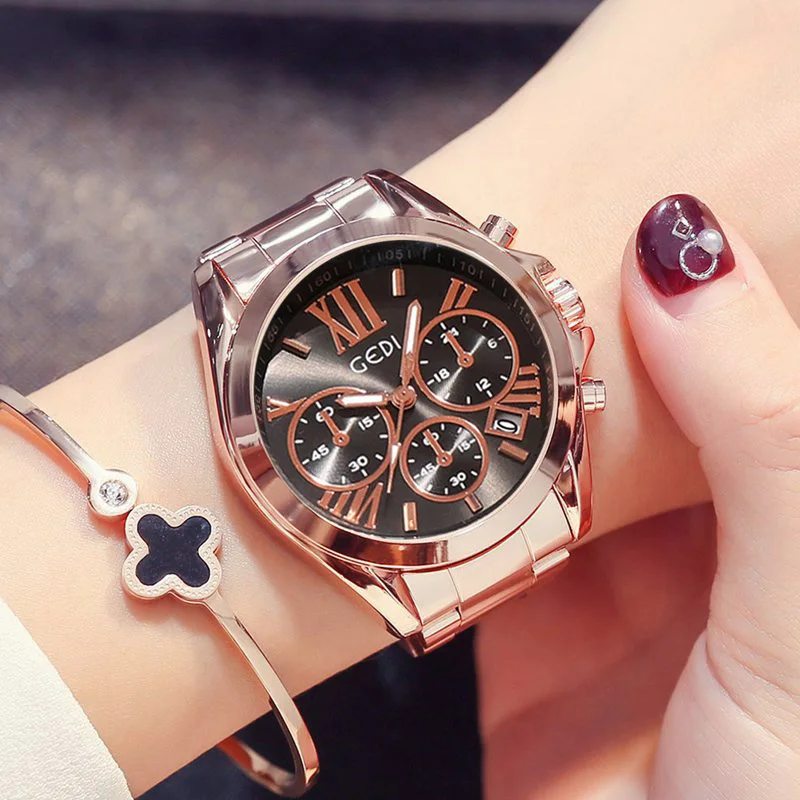 Gimto бренд класса люкс из розового золота Для женщин часы Водонепроницаемый Календари уникальный Кварц Платье в деловом стиле Часы для женщин GOLDEN LADY часы